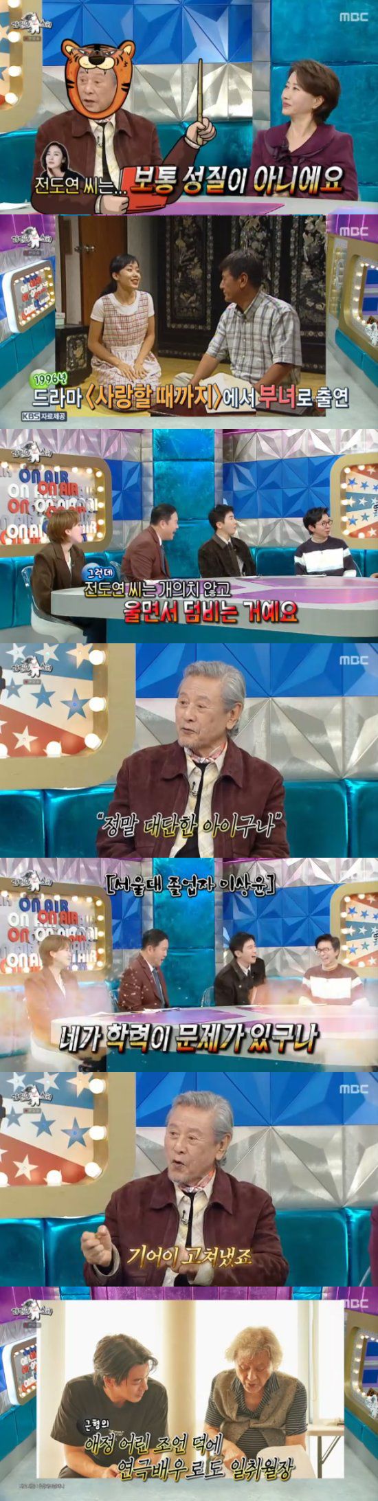 전도연에 대해서는 "'사랑할 때까지'라는 드라마에서 부녀 사이로 출연을 했다. 전도연은 보통 성질 아니다. 당시에 대사를 기계적으로 하는게 신경이 쓰였다. 6개월 정도 함께 연기를 해야하는데, 조언을 해야겠다 싶었다"고 말했다.