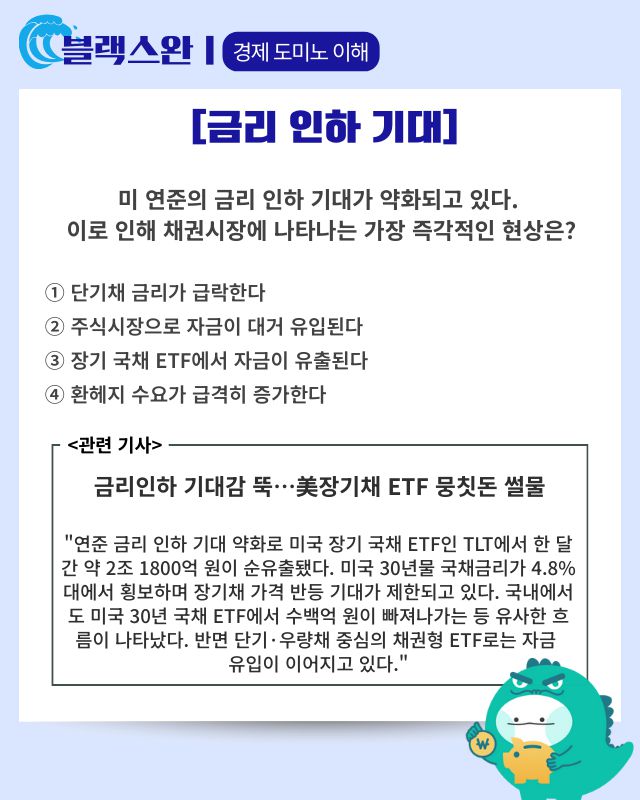 ▶ 기사 바로가기: 금리인하 기대감 뚝···美장기채 ETF 뭉칫돈 썰물