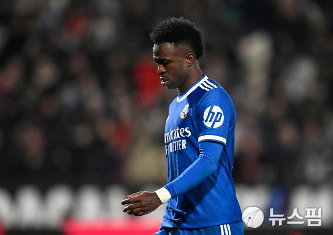 [알바세테 로이터=뉴스핌] 레알 마드리드의 비니시우스가 15일 열린 알바세테와의 국왕컵 16강전에서 탈락한 뒤 고개를 떨구고 있다. 2026.01.15 wcn05002@newspim.com |