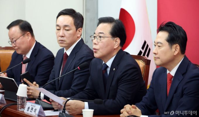 송 원내대표는 15일 서울 여의도 국회 최고위원회의에서 "이미 3특검(김건희·채상병·내란)으로 장기간 대대적인 수사가 진행된 사안에 대해 또 2차 종합 특검을 하겠단 것은 불공정한 '여당무죄·야당유죄'"라며 이같이 말했다.