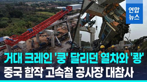 (서울=연합뉴스) 중국 일대일로(중국-중앙아시아-유럽을 연결하는 육상·해상 실크로드) 사업의 일환인 태국 고속철도 공사장에서 무너진 크레인이 달리던 열차를 덮쳐 30여명이 사망했습니다.