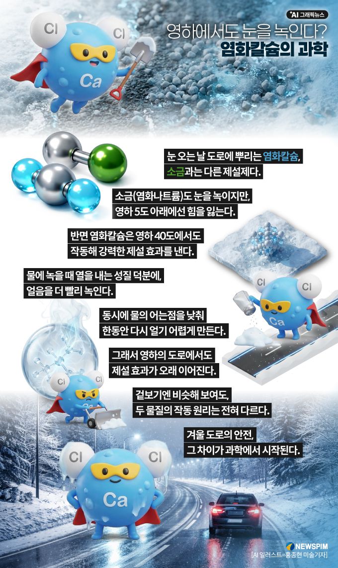 [AI그래픽뉴스] 영하에서도 눈을 녹인다? 염화칼슘의 과학