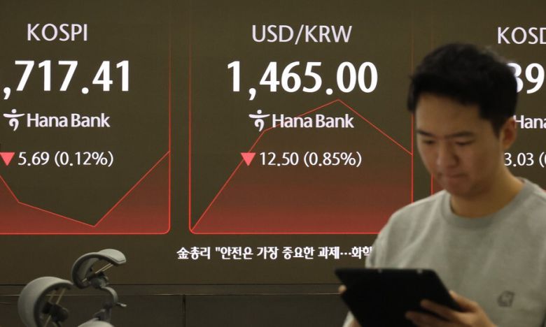 15일 서울 중구 하나은행 본점 딜링룸에서 직원이 증시와 환율을 모니터하고 있다. 연합뉴스 |