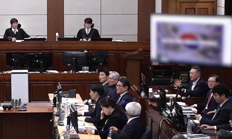 윤석열 전 대통령이 지난 13일 서울 서초구 서울중앙지방법원에서 진행된 내란 우두머리 혐의 2차 결심공판에 출석해 재판부에 의견을 전달하고 있다. 서울중앙지방법원 제공 영상 캡처 |