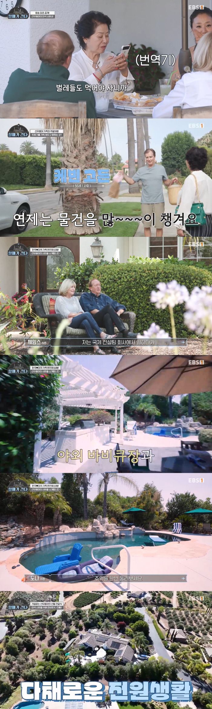 미국에 머물고 있는 선우용여는 딸 연제, 사위 케빈 고든과 손주 이튼 고든, 반려견 맥스와 캘리포니아에 위치한 사돈의 집으로 향했다. 선우용여는 오랜만에 만난 사위와 어색함 없이, 오손도손 대화를 나눠 눈길을 끌었다. 이윽고 으리으리한 사돈의 집에 도착, 사돈과도 반갑게 인사했다.