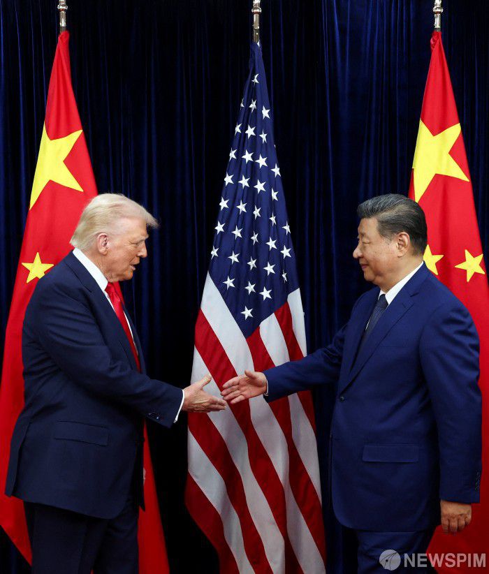 [부산 로이터=뉴스핌] 도널드 트럼프 미국 대통령과 시진핑 중국 국가주석이 지난해 10월 30일 부산 김해국제공항 나래마루에서 정상회담을 앞두고 악수를 하고 있다. 2025.10.30 photo@newspim.com