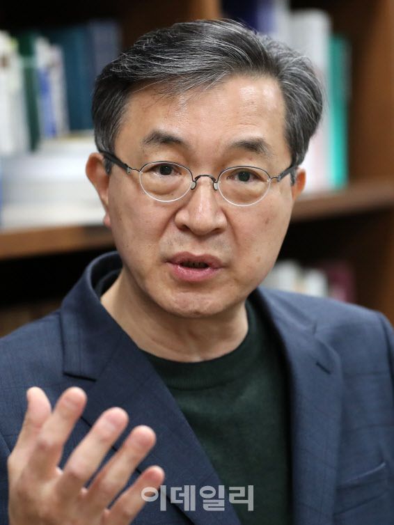 이황(61) 한국유통법학회장(고려대 법학전문대학원 교수)이 최근 이데일리와 서울 고려대 안암캠퍼스 신법학관 집무실에서 만나 인터뷰를 하고 있다.(사진=김태형 기자)