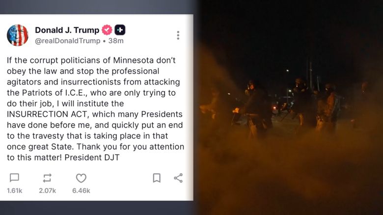 트럼프 대통령은 이날 트루스소셜에 "미네소타의 부패 정치인들이 내란 세력을 막지 않는다면 내란법을 발동하겠다"고 했습니다.