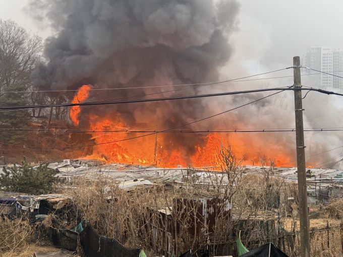 [서울=뉴스핌] 한태희 고다연 기자 = 16일 새벽 서울 강남구 개포동 구룡마을에서 발생한 화재가 확산하면서 소방당국이 '대응 2단계'를 발령하고 진압 중이다.