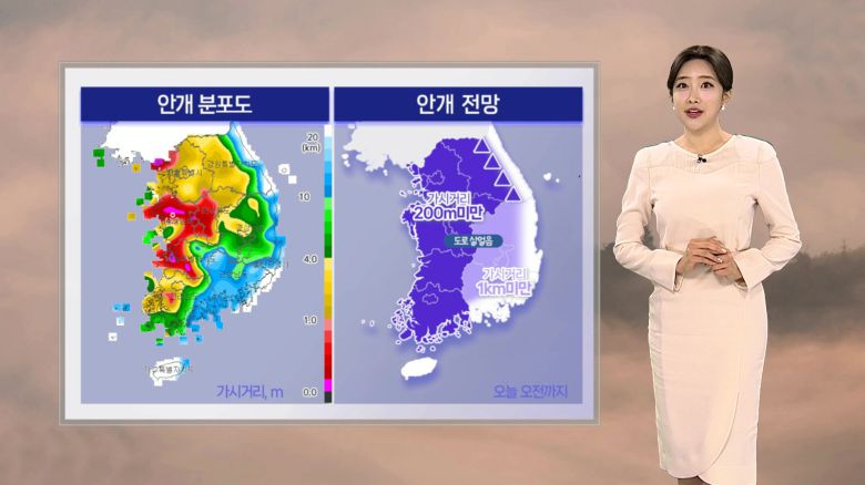 중부와 호남, 경북 북부 내륙의 가시거리가 200m 미만으로 떨어져 있는데요.