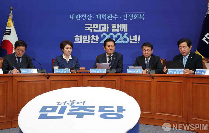 [서울=뉴스핌] 윤창빈 기자 = 정청래 더불어민주당 대표가 16일 서울 여의도 국회에서 열린 최고위원회의에서 모두발언을 하고 있다. 2026.01.16 pangbin@newspim.com