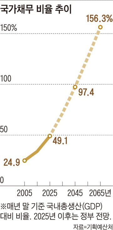 이런 중첩세대 모형은 프로야구뿐 아니라 국가 재정의 두 주인공인 부모 세대와 자식 세대에게도 적용된다. 선거권을 가지고 현재 정부 정책을 좌우하는 부모 세대가 정부 돈을 받아 쓰면 그 과정에서 쌓인 정부 빚은 결국 자식 세대의 부담으로 남는다. 하지만 중첩세대 모형에 따르면 자식 세대가 부모가 됐을 때 이들 역시 정부 돈을 받아서 쓰고, 그래서 생긴 빚은 다시 다음 세대로 넘어간다. 이런 흐름이 세대를 넘어 반복되는 것이다.
