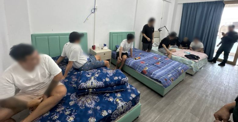 서울동부지방검찰청 보이스피싱범죄 합동수사부의 캄보디아 노쇼 사기 조직 검거 장면. 조직원들을 숙소에서 검거한 직후 모습. [검찰 제공]
