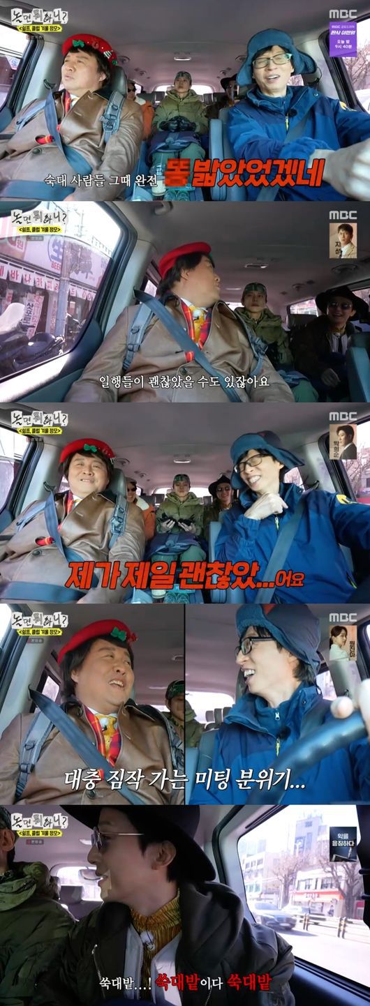 유재석은 "제가 제일 괜찮았다"고 반박했고, 허경환은 "쑥대밭이다"라고 말해 웃음을 자아냈다.