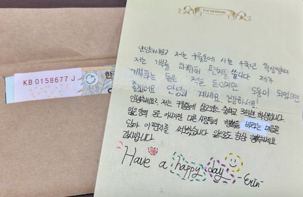 유씨 남매가 남긴 편지에는 "다른 사람들의 행복을 바라는 마음을 담아 편지를 썼다"며 "적은 돈이지만 도움이 되었으면 좋겠다"고 따뜻한 마음을 담겨 있다.