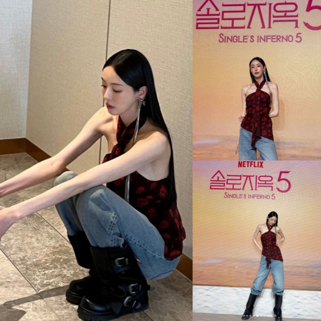 공개된 사진 속 이다희는 레드 패턴의 홀터넥 톱에 데님 팬츠, 블랙 롱부츠를 매치한 스타일로 벽에 기대 선 모습이다. 군더더기 없는 실루엣과 길게 뻗은 각선미가 단번에 시선을 사로잡았다. 과한 노출 없이도 도회적인 분위기와 당당한 애티튜드가 어우러지며 이다희 특유의 아우라를 완성했다.