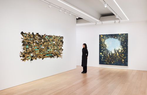 (서울=연합뉴스) 박의래 기자 = 신체적 감각과 자연의 운율을 소리 없는 추상화로 풀어낸 전시가 서울 용산구 리만머핀 서울과 가나아트 한남에서 각각 열리고 있다.