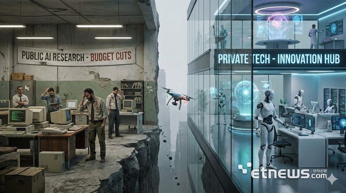 인공지능(AI) 시대 공공 분야의 AI 전환(AX) 요구가 높아지고 있다. 그러나 공공은 고질적인 예산 부족 문제로 인해 급발전하는 민간의 AI 기술에 뒤처질 수 있다는 우려로 고심이 깊다. 해결책이 필요한 시점이다. [사진=AI로 생성]