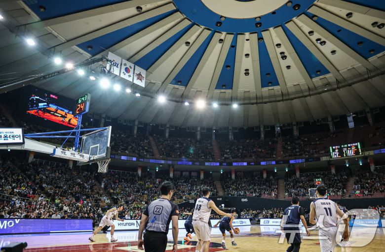 (서울=뉴스1) 김도우 기자 = 18일 오후 서울 송파구 잠실실내체육관에서 열린 2025-2026 LG전자 프로농구 올스타전 팀 브라운과 팀 코니의 경기가 진행되고 있다. 이번 올스타전은 지난 2015-2016시즌 이후 10년 만에 잠실실내체육관에서 열리는 경기로 잠실종합운동장 재개발로 철거가 예정된 잠실실내체육관에서 열리는 마지막 올스타전이 될 전망이다. 2026.1.18/뉴스1
