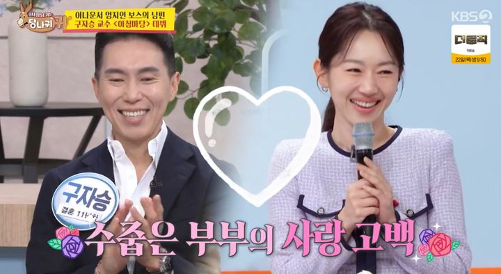 이날 구자승은 '아침마당'에 캐스팅돼 MC인 아내 앞에서 게스트로 자리했다. 구자승은 결혼 11년 차 남편으로, 일본에서 홀로 아이 둘을 양육하는 아빠로서 행복을 전했다.