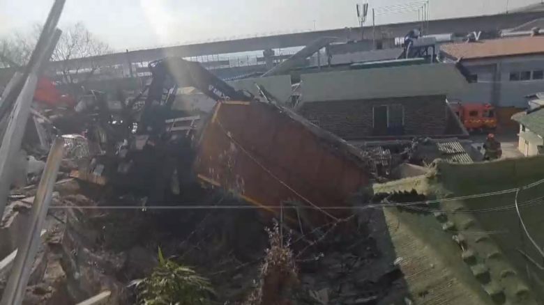 오늘(18일) 오전 11시 20분쯤 경남 김해시 불암동의 한 주택가에서 달리던 화물차가 도로 밖으로 추락해 주택을 덮쳤습니다.