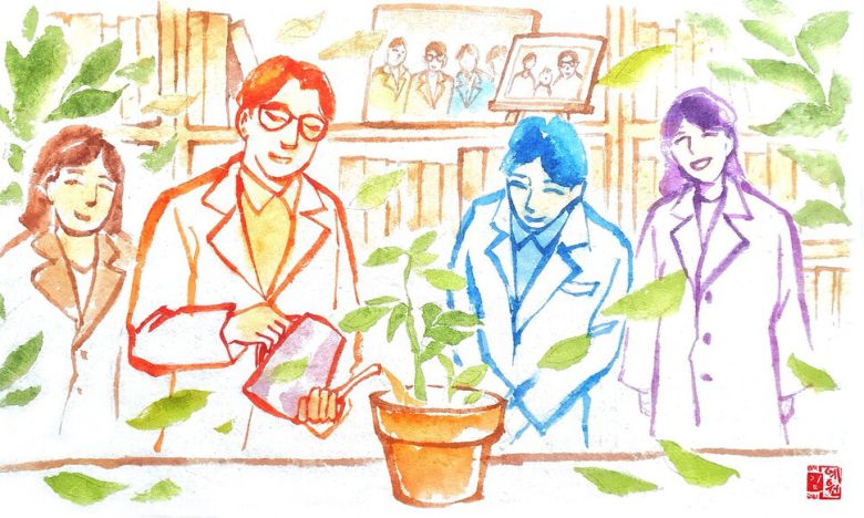 그런데도 ‘우리가 어디에서 왔으며, 무엇이며, 어디로 가는지’라는 근원적 질문을 탐색하는 이 학문은 나뿐 아니라 적지 않은 젊은 학생들을 매료시켜 왔다. 하지만 진화생물학자가 될 이 ‘씨앗’들이 싹을 틔울 수 있는 땅은 국내 대학에 많지 않다. 내가 귀국하여 작은 땅을 일구기 시작하자, 자신이 뿌리내릴 땅을 찾던 귀한 씨앗들이 꾸준히 전국 곳곳에서, 용케도 그리고 고맙게도 우리 연구실을 찾아와 착지했다.