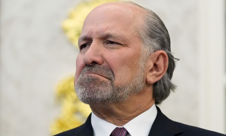 하워드 러트닉 미국 상무장관이 지난 14일(현지시각) 워싱턴 백악관 오벌오피스에서 열린 행사를 경청하고 있다. 워싱턴/AP 연합뉴스