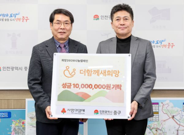 성금 기탁식은 지난 15일 중구 제2청에서 김정헌 인천 중구청장, 더함께새희망 김정해 회장 등이 참석한 가운데 진행됐다. 이번 성금 기탁은 복지 사각지대에 놓인 주민들에게 희망의 손길을 전하는 등 지역사회에 실질적인 도움을 주는 데 목적을 뒀다.