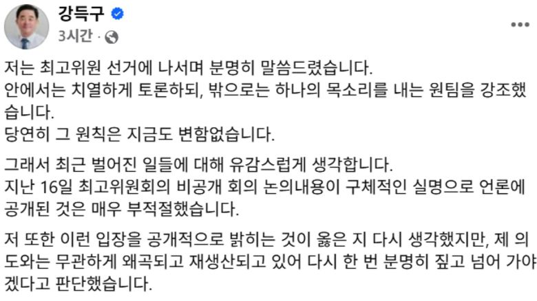 강 최고위원은 어제(18일) SNS를 통해, 1인 1표제를 찬성하는 자신의 입장은 바뀌지 않았고, 즉각 추진해야 한다는 입장은 동일하다고 말했습니다.