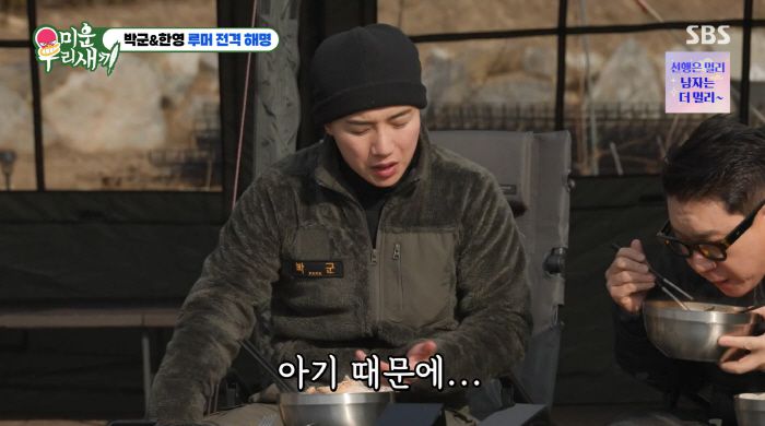 이날 박군은 한영 없이, 충북 괴산에서 홀로 지내는 근황을 전했다. 박군을 찾아온 이상민과 임원희는 "집에 있으면 답답해? 그분이 잔소리가 심한가?"라고 물었지만 박군은 대답을 피했다.