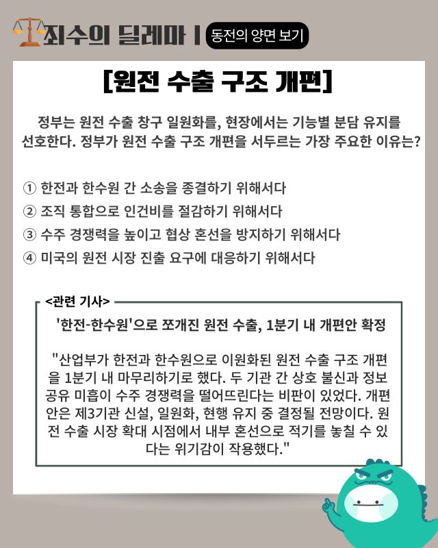 ▶ 기사 바로가기: ‘한전-한수원’으로 쪼개진 원전 수출, 1분기 내 개편안 확정