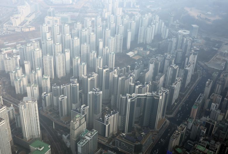 서울 송파구 롯데월드타워에서 바라본 한강변 아파트 단지. [연합] |