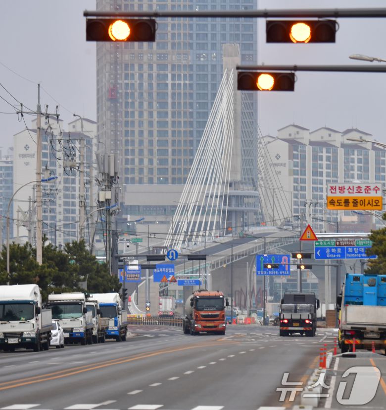 (포항=뉴스1) 최창호 기자 = 19일 경북 포항시 송도해수욕장과 영일대해수욕장을 연결하는 해오름대교 공사가 오는 6월 개통을 목표로 순조롭게 진행되고 있다. 2021년 착공한 해오름대교는 총연장 395m의 왕복 4차로 교량으로 국비 389억 원과 도비 170억 원, 시비 등 총 748억 원이 투입됐다. 2026.1.19/뉴스1