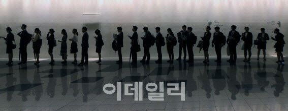 채용박람회를 찾은 취업 준비생들이 면접 대기실로 향하며 길게 줄지어 서있다.[사진=이데일리 노진환 기자]