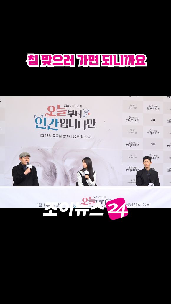 김정권 감독, 배우 김혜윤, 로몬이 지난 16일 오후 서울 목동 SBS에서 열린 SBS 새 금토드라마 '오늘부터 인간입니다만' 제작발표회에 참석해 소감을 말하고 있다. [영상=문수지 기자]