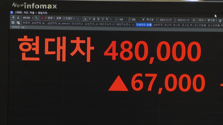 현대차 시가총액은 지난해 12월 60조 원을 넘어선 데 이어 지난 7일 70조 원, 13일 80조 원을 차례로 넘어섰습니다.