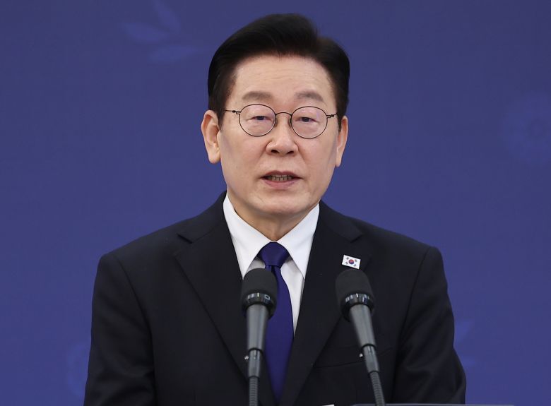 19일 이재명 대통령이 청와대에서 열린 조르자 멜로니 이탈리아 총리와의 공동언론발표에서 발언하고 있다. [연합]