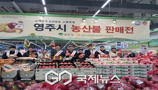 (영주=국제뉴스) 백성호 기자 = 영주시가 지난 16일부터 농협하나로 고양유통센터와 하나로마트 수원점에서 '2026년 대도시 농특산물 직판행사'를 동시에 열고, 영주산 사과와 고구마를 중심으로 홍보·판매 활동을 진행하고 있다.