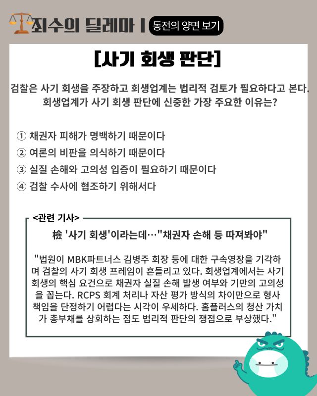 ▶ 기사 바로가기: 檢 ‘사기 회생’이라는데···“채권자 손해 등 따져봐야”