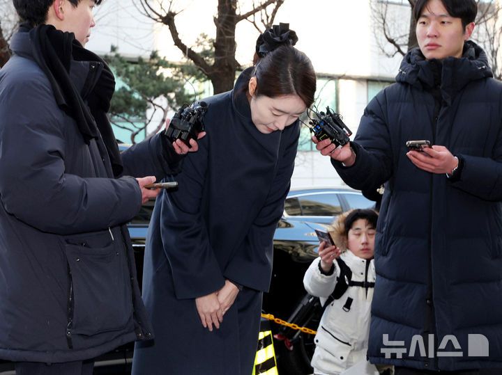 [서울=뉴시스] 김진아 기자 = 공천헌금 1억원을 수수한 혐의를 받는 강선우 무소속 의원이 20일 서울 마포구 서울경찰청 광역수사단 공공범죄수사대에 조사를 받기 위해 출석, 고개숙여 인사하고 있다. 2026.01.20. bluesoda@newsis.com