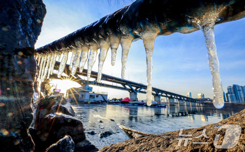 (서울=뉴스1) 이호윤 기자 = 한파주의보가 발효된 20일 서울 광진구 인근 한강에 고드름이 얼어있다. 기상청은 이날부터 전국 대부분 지역에서 아침 기온이 전날보다 10도 이상 크게 떨어지는 곳이 많겠다며 당분간 강한 추위가 지속되겠다고 예보했다. 2026.1.20/뉴스1