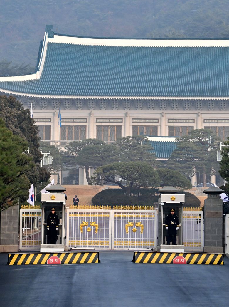 이재명 대통령이 청와대로 첫 출근한 지난달 29일 오전 서울 종로구 청와대 정문에서 경호처 관계자들이 경비를 서고 있다. 임세준 기자