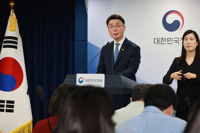 지난 15일 서울 종로구 정부서울청사에서 류제명 과학기술정보통신부 2차관이 ‘독자 인공지능(AI) 파운데이션 모델’ 프로젝트 1단계 평가 결과를 발표 하고 있다. 정용일 선임기자 yongil@hani.co.kr |