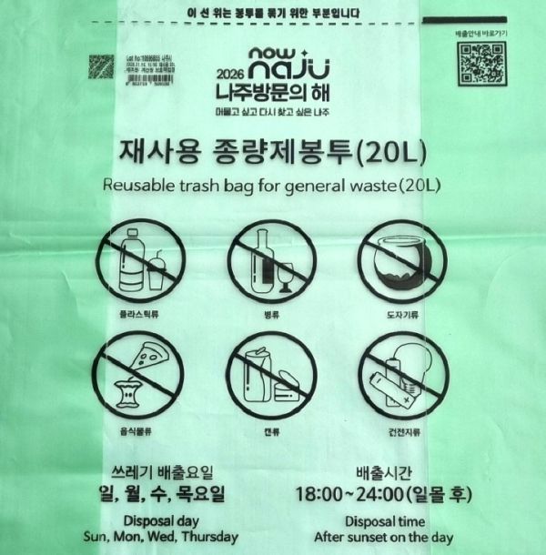 나주시는 시민들이 일상적으로 사용하는 생활 쓰레기 종량제봉투를 매개로 '2026 나주 방문의 해'와 지역의 매력을 지속적으로 알릴 수 있을 것으로 기대합니다.