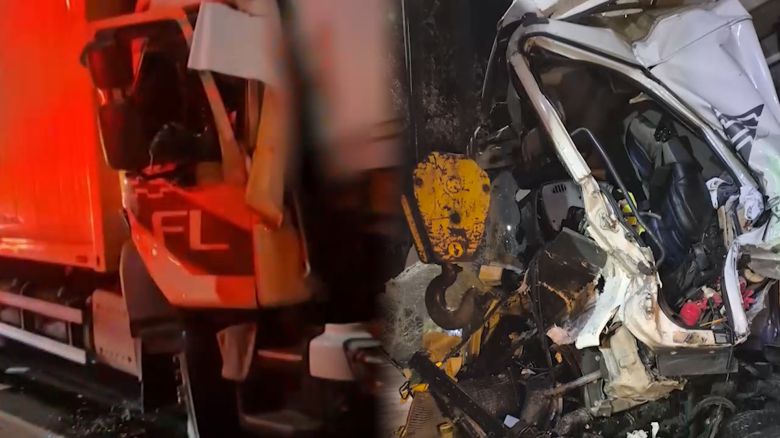 8.5톤 대형 화물차가 4차로를 주행하던 중 앞서가던 11.5톤 대형 화물차를 들이받았고, 앞서가던 화물차는 사고 충격으로 충격 흡수 장치를 들이받은 뒤 갓길에 정차했습니다.