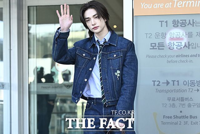 [더팩트|인천국제공항=이상빈 기자] 케이팝 그룹 스트레이키즈(Stray Kids) 멤버 현진이 쌀쌀한 날씨에도 남다른 패션 감각을 자랑하며 해외로 출국했다.