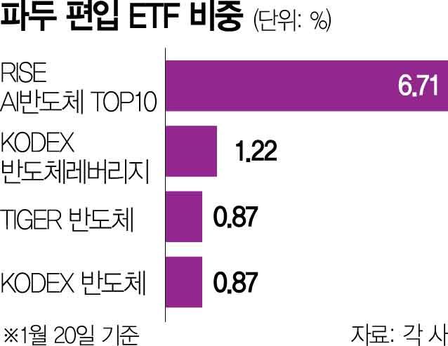파두 매매 정지는 ETF 수익률에도 영향을 미치고 있다. 반도체 업종 전반이 반등하는 국면에서 RISE AI반도체TOP10은 다른 반도체 ETF 대비 수익률이 뒤처졌다. 최근 1개월 수익률은 22.28%로 파두를 담지 않고 있는 유사한 구조의 상품과 10%가량 격차가 벌어졌다. 파두 편입분이 ETF 수익률 상승에 기여하지 못하는 구조가 영향을 끼쳤다는 분석이다.