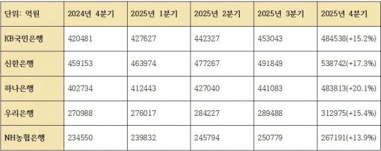 반면 농협은행의 올해 4분기 퇴직연금 적립액은 전년도이 대비 13.9% 상승한 26조7191억원을 기록, 5대은행 중 가장 낮은 상승폭을 나타냈다. 직전분기인 2025년 3분기와 비교해도 6.5%로 상승폭이 가장 낮았다.
