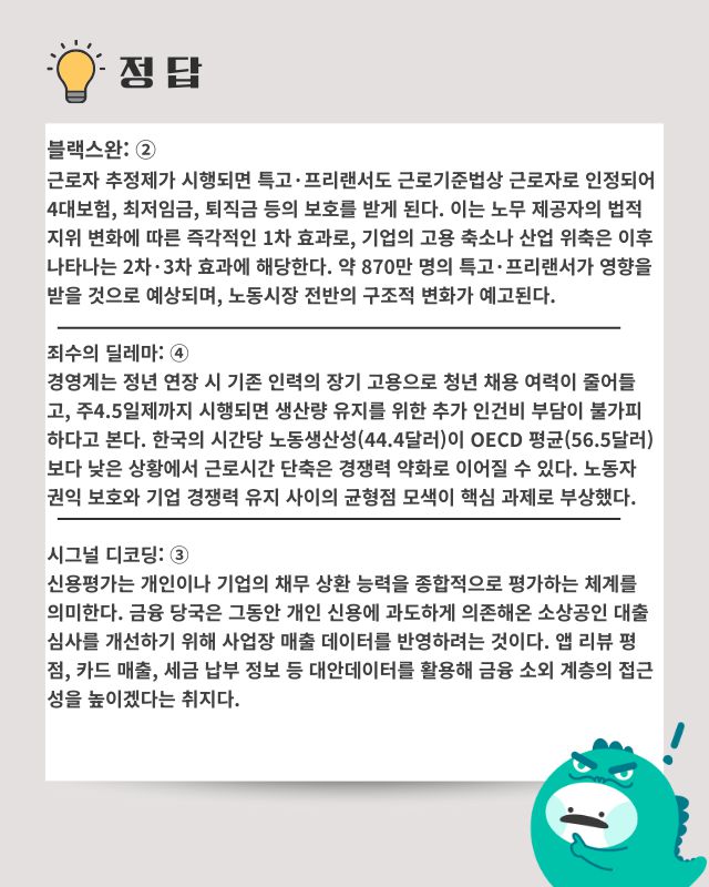 근로자 추정제 도입으로 노동법 대개편 예고: 정부·여당이 약 870만 명의 특고·프리랜서·플랫폼 종사자를 근로자로 인정하는 ‘근로자 추정제’ 도입을 5월 1일까지 입법 추진키로 했다. 제도 시행 시 최저임금·퇴직금·4대 보험 적용 대상이 대폭 확대되면서 인건비와 행정 부담이 가중될 것으로 예상돼 기업들은 고용 구조 전반에 대한 선제적 검토가 필요하다.