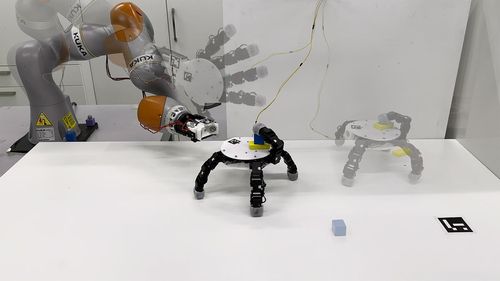 "로봇팔에서 분리된 로봇손이 주변 기어 다니며 물체 회수한다"로봇팔에서 분리된 로봇손은 기어 다니며 물체 3개, 최대 2㎏까지 회수한 다음 돌아와 로봇팔에 재결합할 수 있다. [Xiao Gao 제공. 재판매 및 DB 금지]
